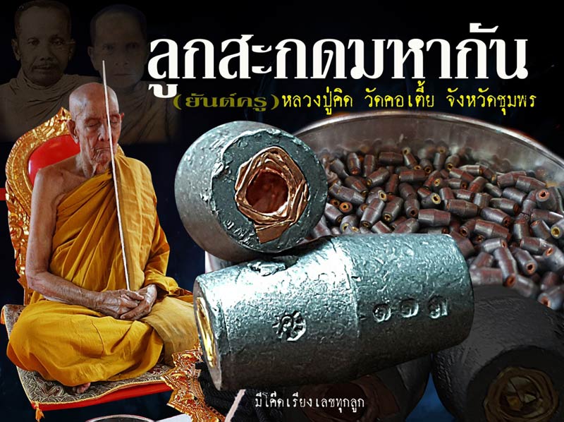 *ลูกสะกดมหากัน หลวงปู่คิด วัดคอเตี้ย จังหวัดชุมพร ศิษย์หลวงพ่อสินธุ์ วัดคูขุด และหลวงพ่อจอน วัดดอนรวบ ผู้เป็นพระอาจารย์รูปหนึ่งของเสด็จเตี่ยกรมหลวงชุมพรฯ