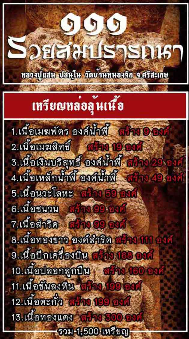 เหรียญหล่อ ๑๑๑ รวยสมปรารถนา แกะซองลุ้นเนื้อ 13 รายการ